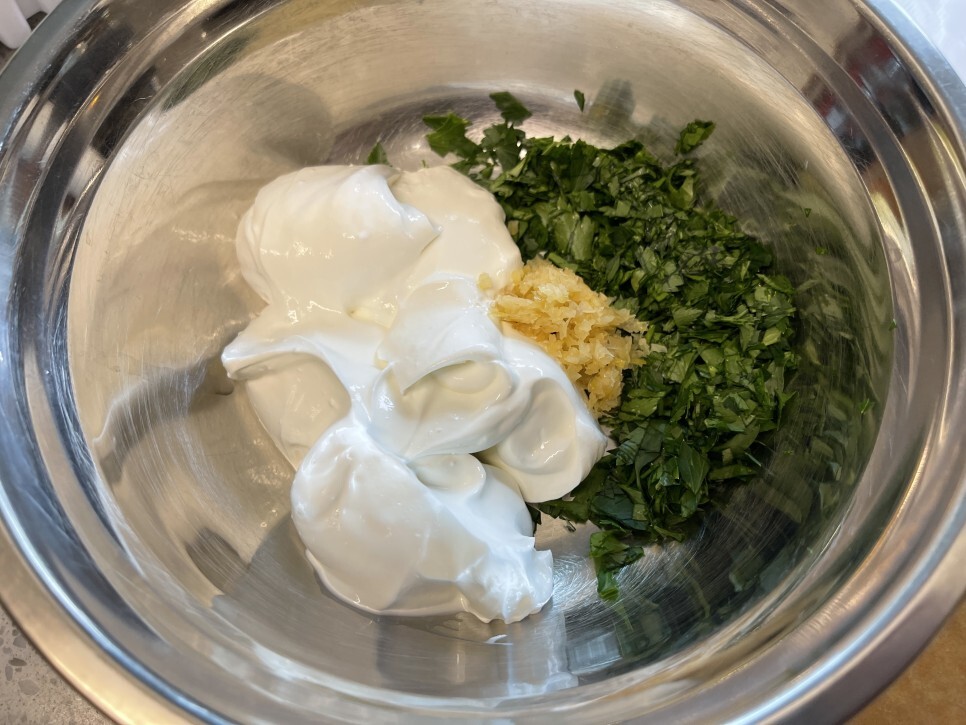 그리고는 사워크림 6T 와 다진마늘 1T 정도 넣어주고요.