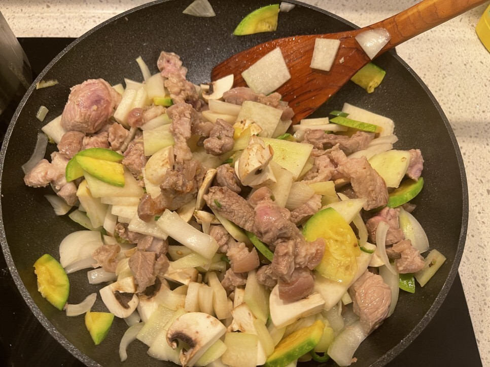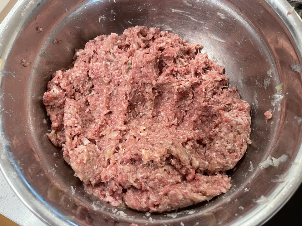 이후 다짐육 넣고 소금 후추 넉넉히 넣어줬습니다.