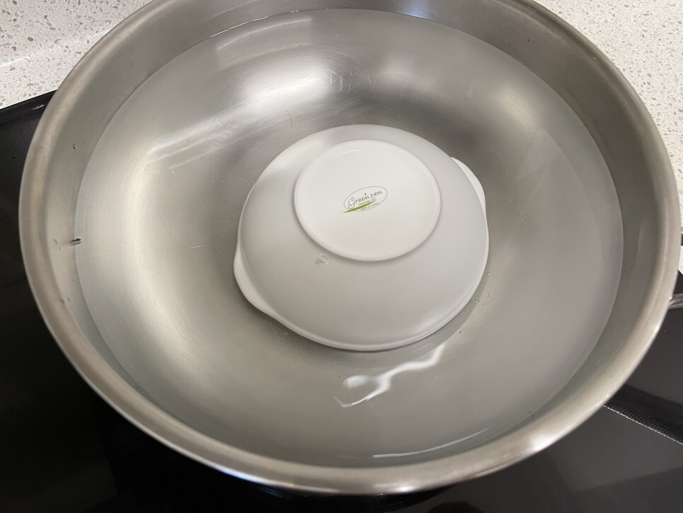 랩을 씌우고 3분간 중탕을 시켜준 다음,