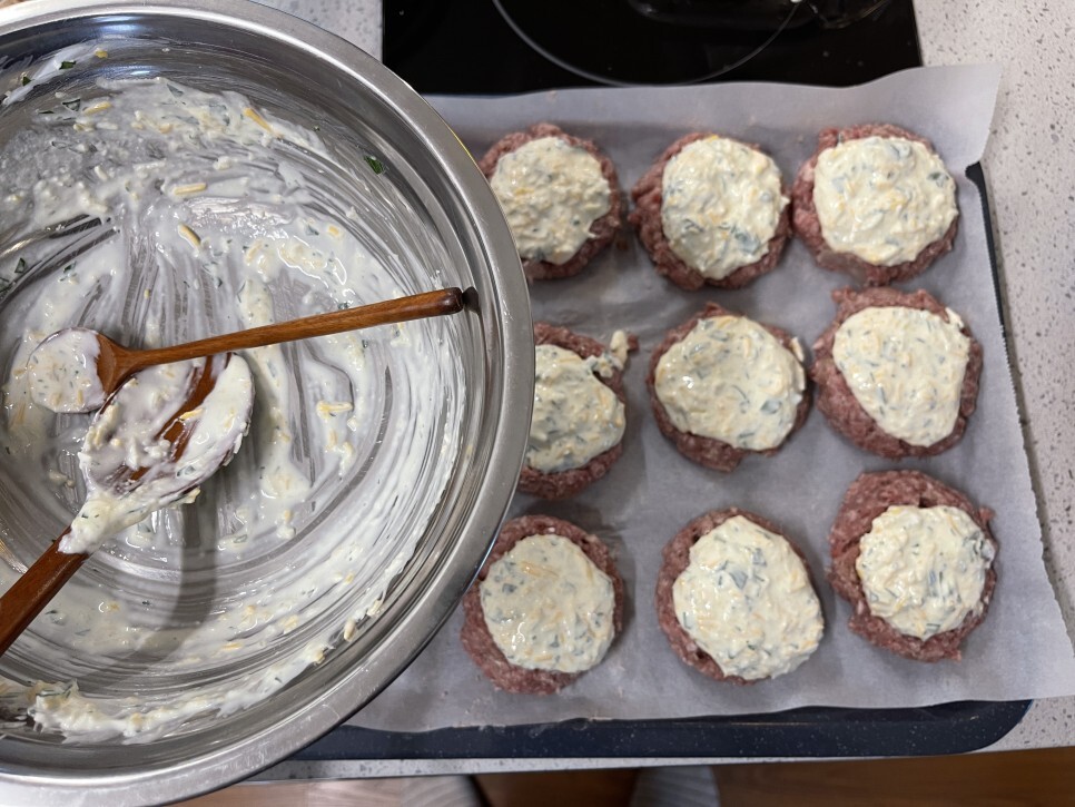 마치 크림치즈가 햄버거 번 같이 되었네요.